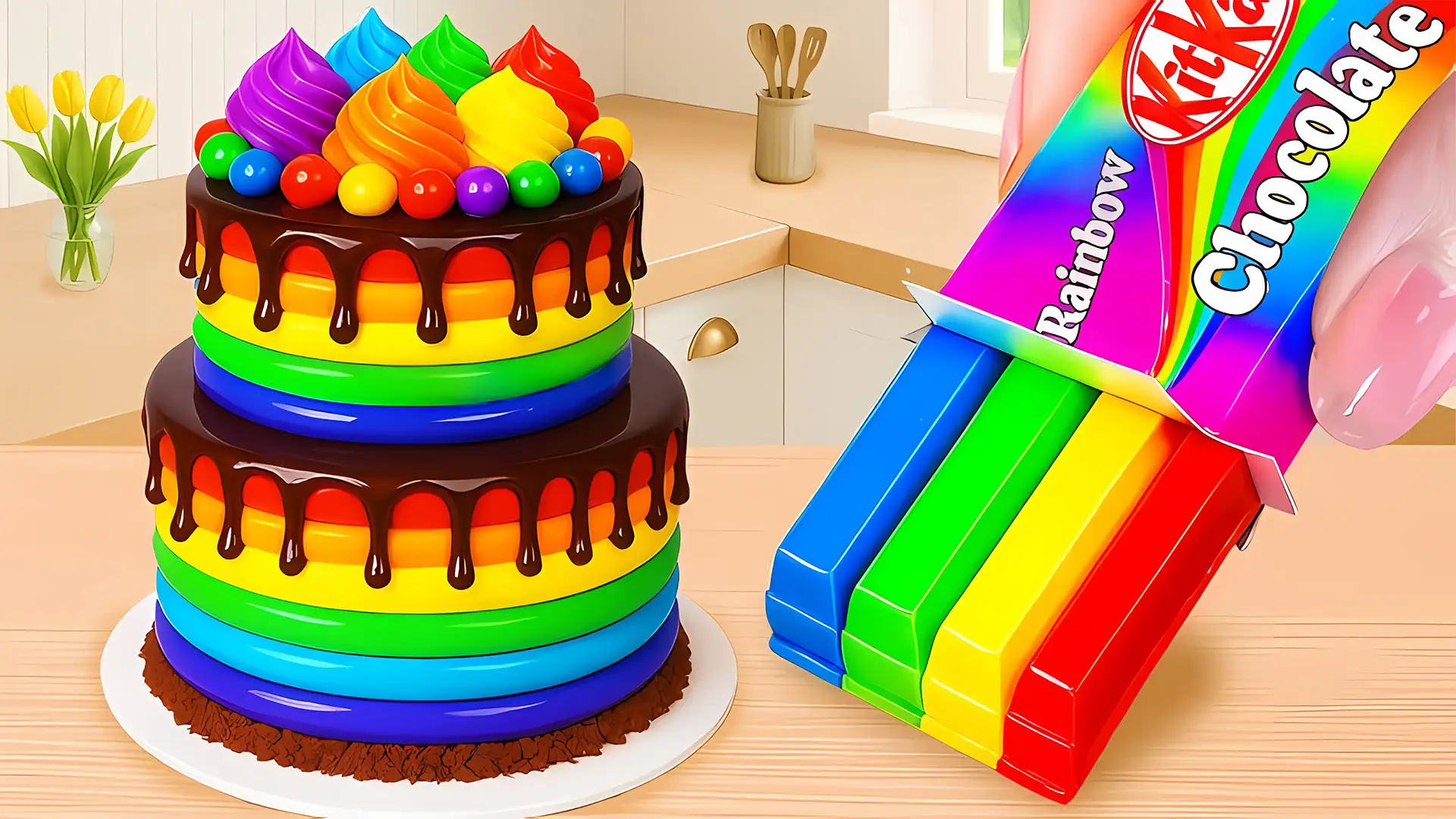پخت کیک مینیاتوری رنگین‌کمانی کیندر جوی به سبک ASMR.